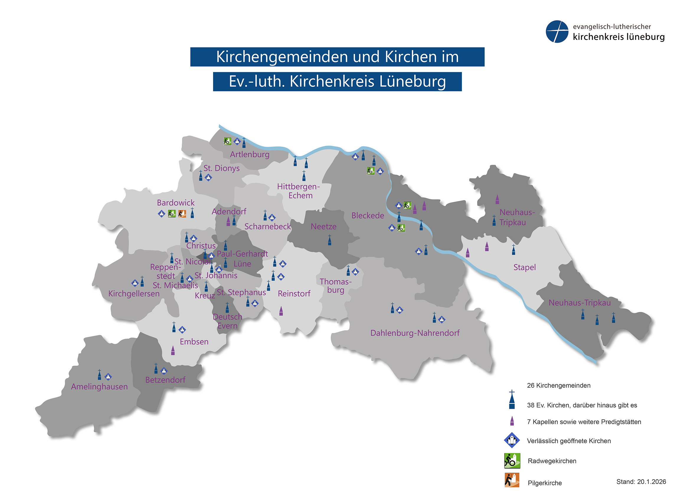 Herzlich willkommen im evangelisch-lutherischen Kirchenkreis Lüneburg. 26 Gemeinden und viele Einrichtungen sind in ihm verbunden.