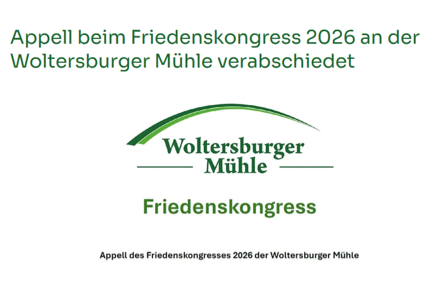 Die Teilnehmenden des Friedenskongresses 2026 am 6. März in der Woltersburger Mühle apellieren angesichts einer drohenden atomaren Aufrüstung an die Bundesregierung, dass Deutschland endlich dem ...
