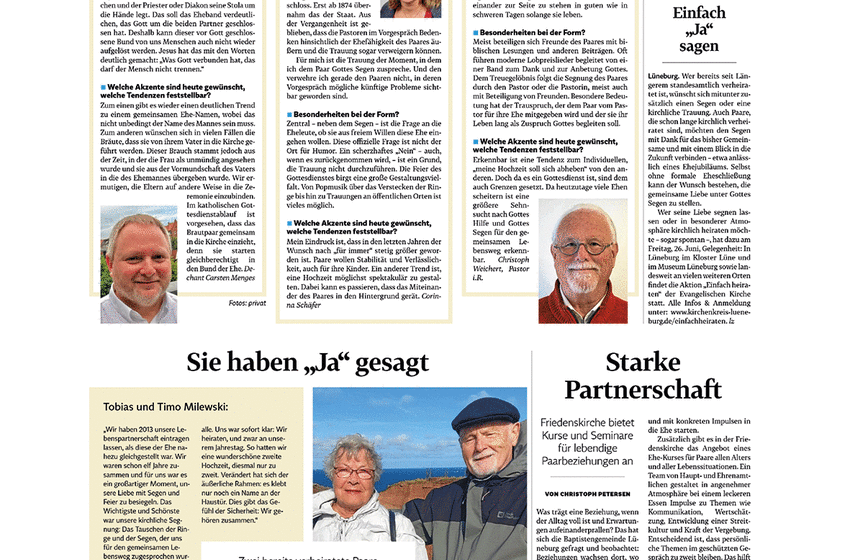 Welche Bedeutung hat Heiraten für Sie? Das ökumenische Redaktionsteam hat die kirchliche Trauung in den Blick genommen: Wie ist das Eheverständnis? Welche Akzente und Wünsche gibt es bei den ...