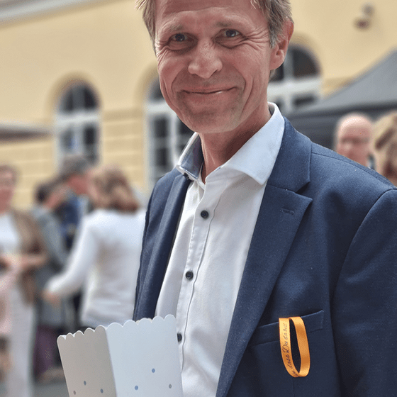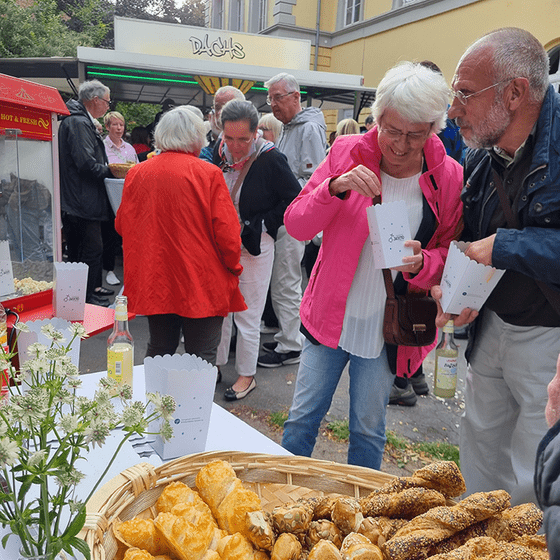 Nach dem unterhaltsamen Austausch überraschte Daniel Kaiser die Gäste mit einem Querflötenspiel gemeinsam mit Kirchenmusikdirektor Dr. Ulf Wellner am Klavier und blieb auch noch beim anschließenden Fest bei Popcorn und Getränken im Freien.