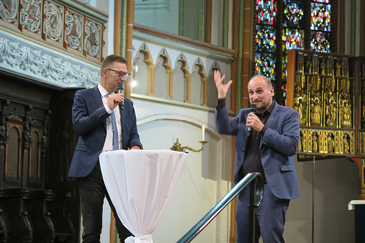 „Und die Kirchen?“, fragte Superintendent Christian Stasch: „Als Kirche sind wir kein Startup, sondern werden von außen eher mit Traditionen assoziiert“. Daniel Kaiser entgegnete, Kirche stünde für Sesshaftigkeit und Solidarität, sie habe es auch schwer gegen das Klischee anzukämpfen. Aber in der Bibel gäbe es viel mehr Geschichten des Umzugs und Aufbruchs: Abraham, Mose und das Volk Israel, Jesus und Paulus seien immer unterwegs gewesen. Aus diesen Geschichten werde klar, dass es für Transformationen oft zwei Generationen lang brauche. Er stellt auch fest: „Die Angst vor Substanzverlust ist bei Kirche da, aber ich sehe das nicht. Man muss auch mal was wagen, die Themen der Menschen aufspüren. Wo könnte es ein Programm geben, eine Sprache, eine Plattform, um mal ein Experiment zu machen?“