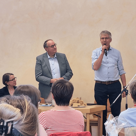 Auch wenn es eine Kick off Veranstaltungen war: „Der Zug ist schon angefahren“, machte Christian Stasch deutlich. Dr. Jens Lehmann nannte die Zahlen: Die Kirchenmitgliedschaften sinken und in zehn Jahren werde es 30% weniger Kirchensteuereinnahmen geben: „Das ist leider ein realistischer Wert. Die Antworten darauf suchen wir an verschiedenen Stellen“. Der Präsident des Landeskirchenamtes verwies auf den Zukunftsprozess der evangelischen Landeskirche, das Setzen von Schwerpunkten kirchlicher Arbeit wie Anfänge im Glauben. „Wir müssen die Herausforderungen annehmen, damit wir in Zukunft gut aufgestellt sind. Neben den Aufgaben geht es um das Wie“. Konkret nannte Dr. Jens Lehmann die Konzentration von Verwaltung: „Die notwendigen Expertise muss nicht in jeder Einheit vorhanden sein. Verwaltungskonzentration wird auch auf Landeskirchlicher Ebene stattfinden. Zuständigkeitsräume müssen zwangsläufig größer werden.“ Statt derzeit drei müsse es ein einziges Amt in einem größeren Kirchenkreis geben, Verwaltung müsse geräuschlos im Hintergrund funktionieren und vor allem die Digitalisierung vorangebracht werden. Vereinheitlichung der IT und Softwarelösungen seien die wichtigsten Aufgaben.