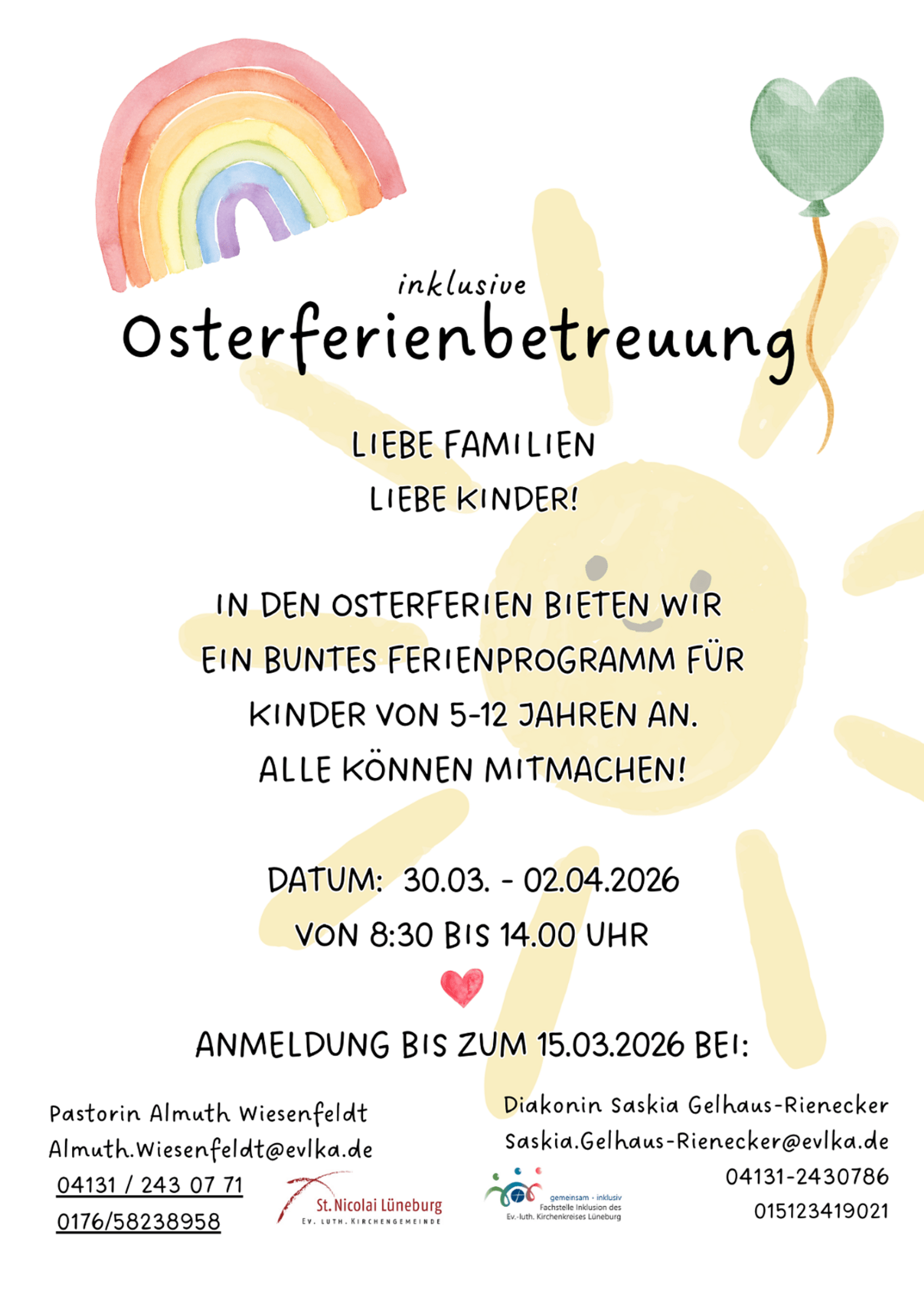 Informationen und Anmeldung: saskia.gelhaus-rienecker@evlka.de oder Almuth.Wiesenfeldt@evlka.de.